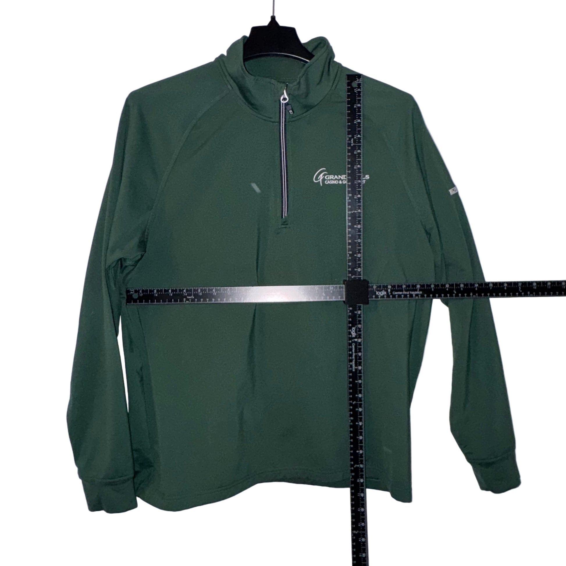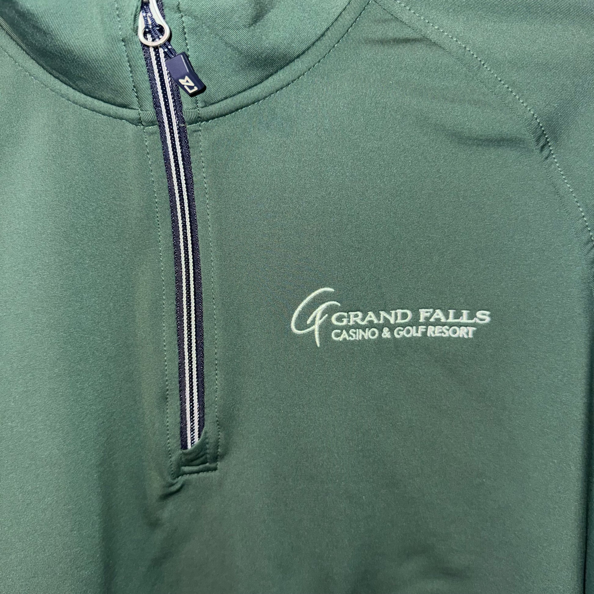 Elevate your casual wardrobe with this Cutter & Buck 1/4 zip pullover, featuring the Grand Falls Casino & Golf Resort branding. Crafted from quality materials, this preloved piece delivers the comfort and durability Cutter & Buck is known for. The quarter-zip design offers versatile layering options, making it ideal for golf outings, resort visits, or everyday wear. A timeless addition to any collection, this pullover combines functionality with understated style.