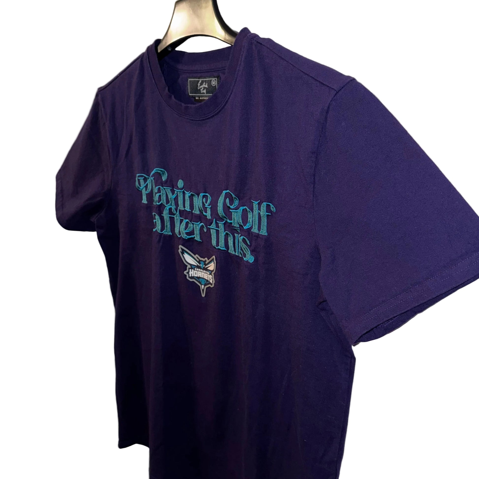Eastside Golf's collaboration with the NBA brings authentic sportswear heritage to this Charlotte Hornets tee. This preloved piece combines the brand's signature golf aesthetic with iconic NBA branding, delivering a versatile layer that transitions seamlessly from court to street. The worn-in character adds vintage appeal while maintaining quality construction. Perfect for collectors and fans seeking distinctive team apparel with designer credibility.