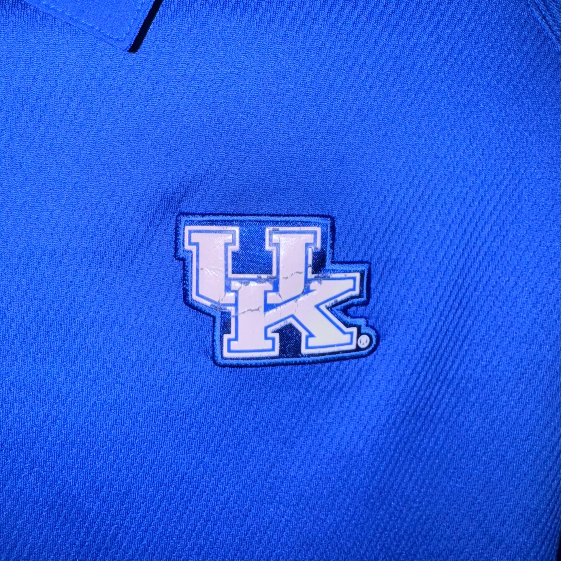 Show your Jayhawks pride with this preloved Nike University of Kansas polo. Crafted for comfort and style, it features the iconic KU branding and Nike’s quality materials. Perfect for game days or casual wear, this polo delivers a polished look while celebrating your team allegiance. Its pre-owned condition offers a unique, broken-in feel with enduring durability.