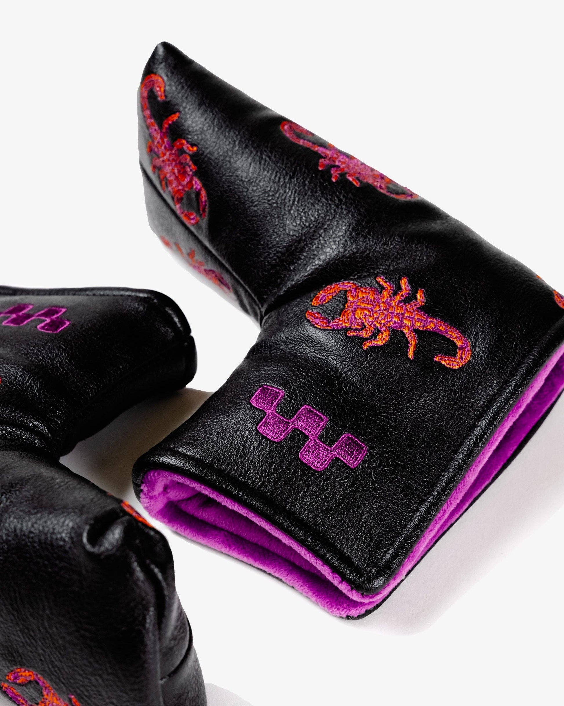 Bring a bold edge to your putter with the Stinger Blade Putter Cover from Devereux Golf. Featuring an allover scorpion embroidery, this cover captures the spirit of the creepy crawlers you might come across on the course. Crafted from durable PU leather with a plush lining, it provides both style and protection for your blade putter. The intricate detailing of the scorpions makes this headcover a standout addition to your golf bag.